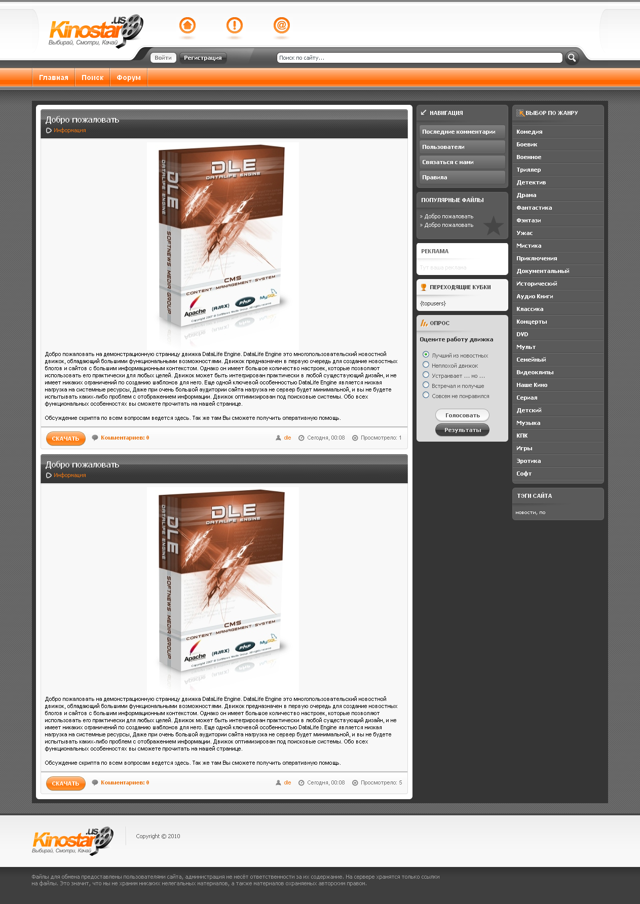 ![]() kinostar - полностью доработанный шаблон для DLE |